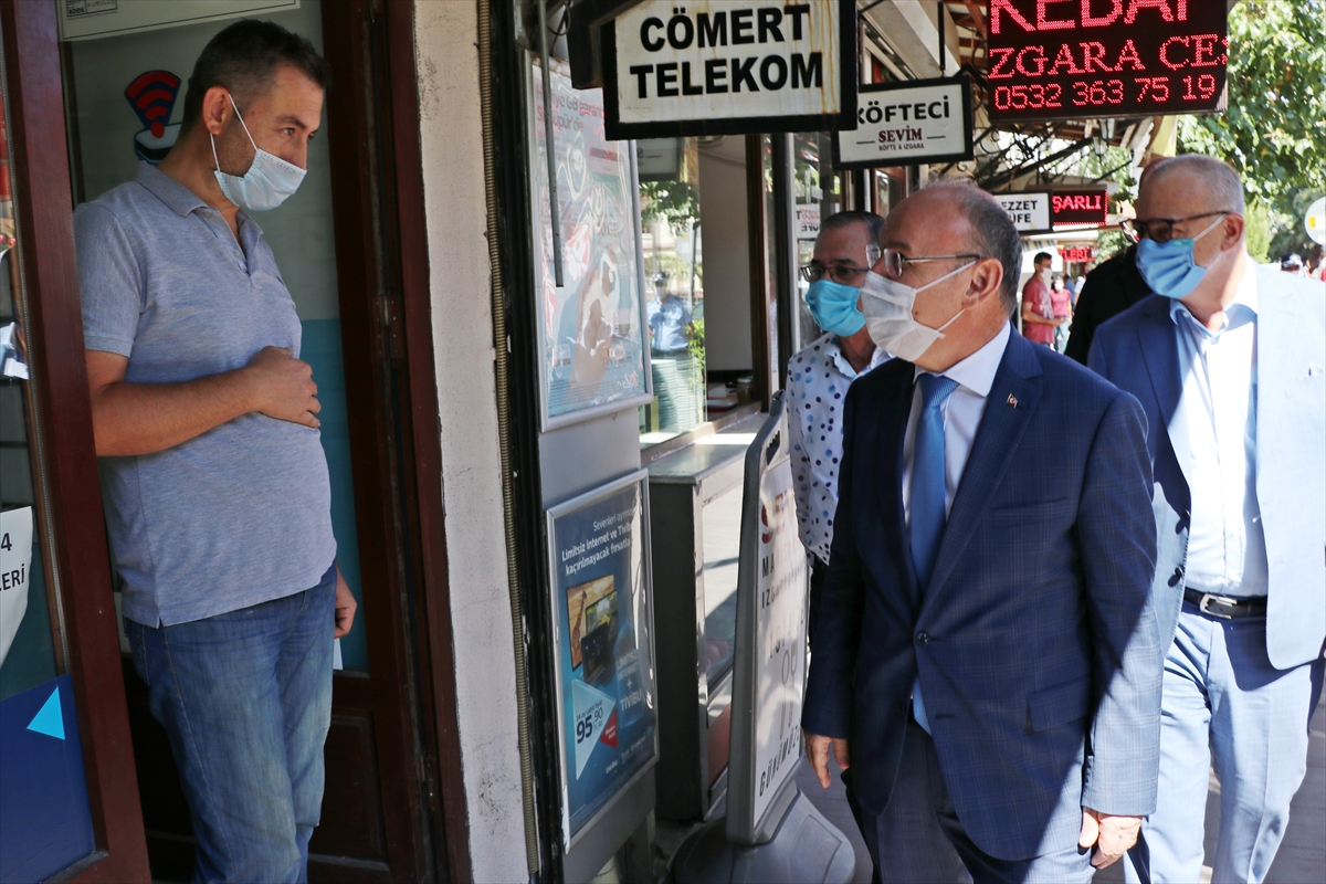 Manisa’da İçişleri Bakanlığı genelgesi doğrultusunda, yeni tip koronavirüs (Kovid-19) tedbirleri kapsamında denetimler yapıldı. Manisa Valisi Yaşar Karadeniz (sağdan 2), Büyükşehir Belediye Başkanı Cengiz Ergün (sağda), Dr. Sadık Ahmet Caddesi’nde denetimlere katıldı.